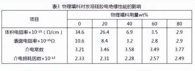 隨著物理填料用量的增大,硅橡膠的體積電阻率和表面電阻率呈減小趨勢(shì),介電常數(shù)和介電損耗因數(shù)總體呈增大趨勢(shì)??梢? 添加物理填料在一定程度上損害了硅橡膠的電絕緣性能。