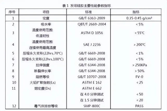 有機(jī)硅橡膠基體的密度為1.17g/cm3。但通過發(fā)泡處理,當(dāng)前的成熟工藝中所制備的有機(jī)硅橡膠泡沫材料的密度最低可為0.16-0.20 g/cm3,可被用于汽車座椅、頭枕等部件;而常規(guī)的有機(jī)硅橡膠泡沫材料(密度為0.45 g/cm3)則被廣泛用于密封、減震等部位的縫隙填充。